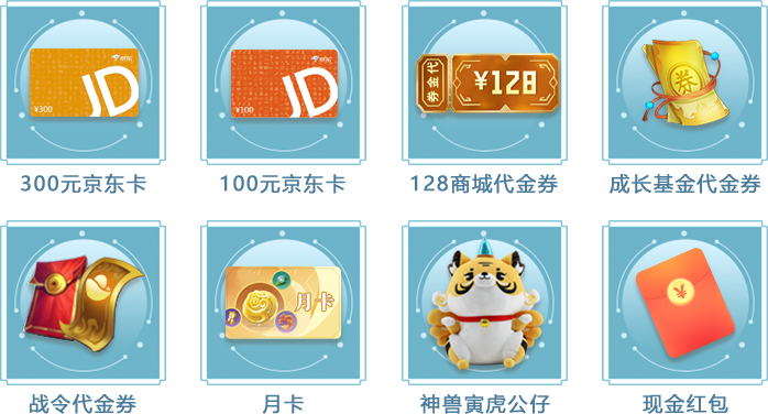 1、活動期間玩家上傳累計充值128元截圖,即可參與抽獎,抽獎必定中獎,每位玩家僅可抽獎1次,獎品的數量有限,先到先得;