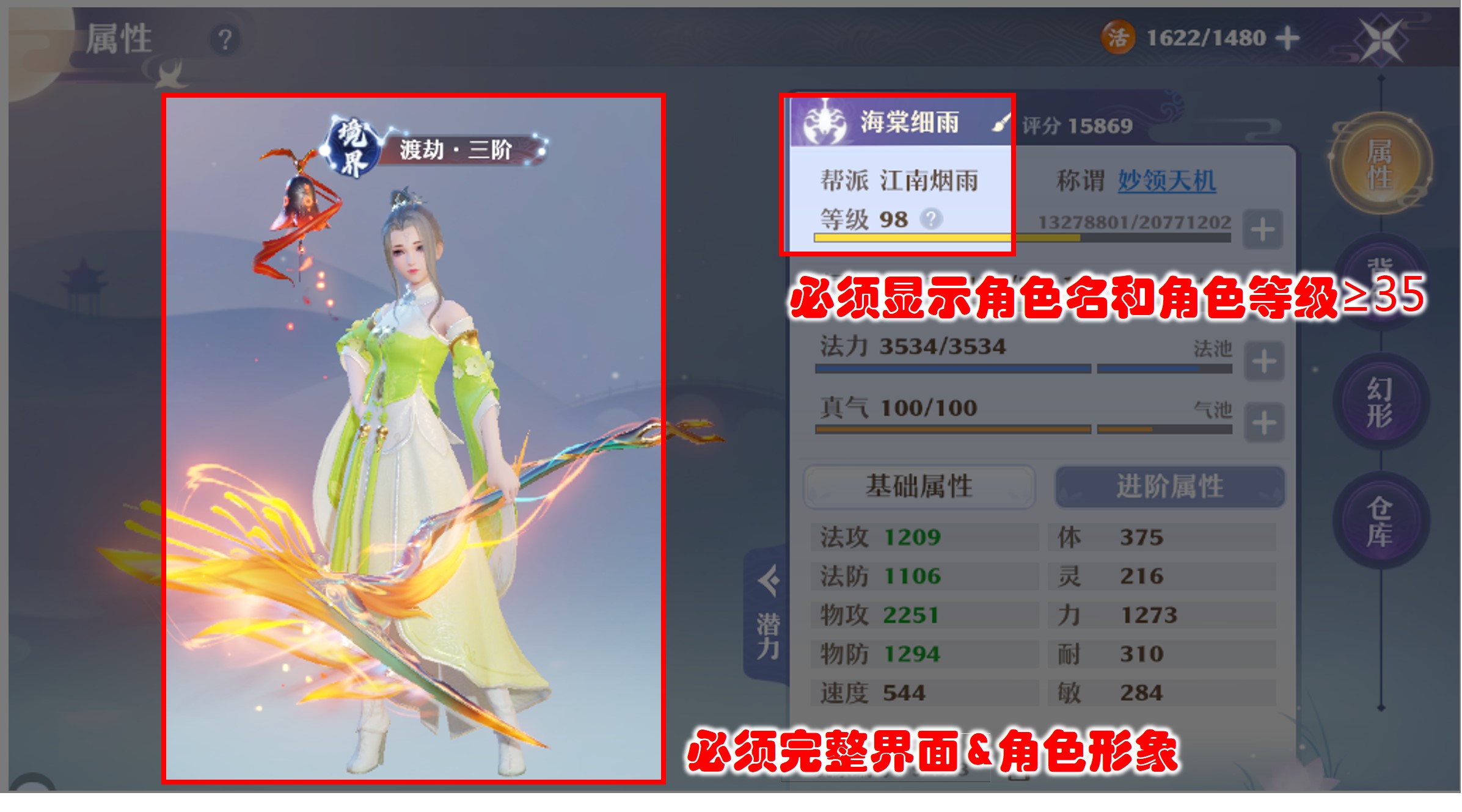 4、截圖必須包括角色、等級(jí)等信息,詳情參考截圖示意。