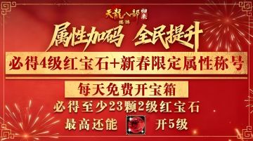 新春納福,好運連連!只要每日登錄簽到,5級寶石輕松領,更有機會開出6級紅寶石和永久坐騎金甲獅!