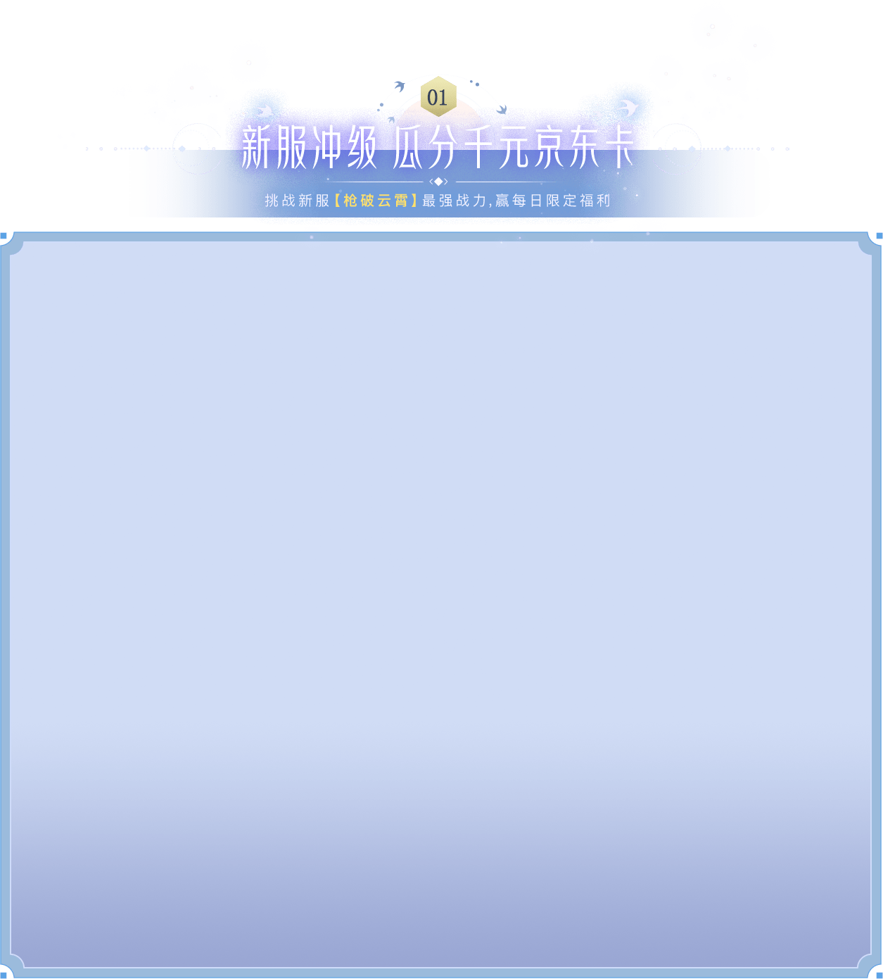 2、活動期間玩家上傳新服角色評分截圖,可隨機獲得對應(yīng)的活動獎勵,每位玩家僅可選擇其中一個評分等級活動參與,僅限激活頁面領(lǐng)取的新人特權(quán)禮包的玩家領(lǐng)取,獎品數(shù)量有限,每日更新補倉,先到先得;