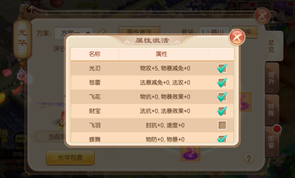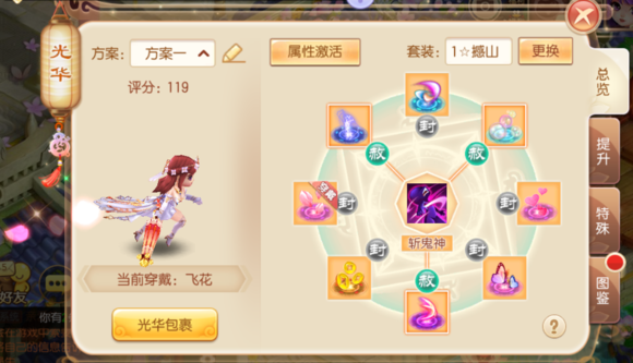 如果少俠將八種基礎(chǔ)光華均提升到1星以上便可激活套裝屬性,套裝屬性也是可以根據(jù)自己的職業(yè)和需求自由選擇效果的呢。ü馊A套裝的級別取決于八大基礎(chǔ)光華中最低的級別)